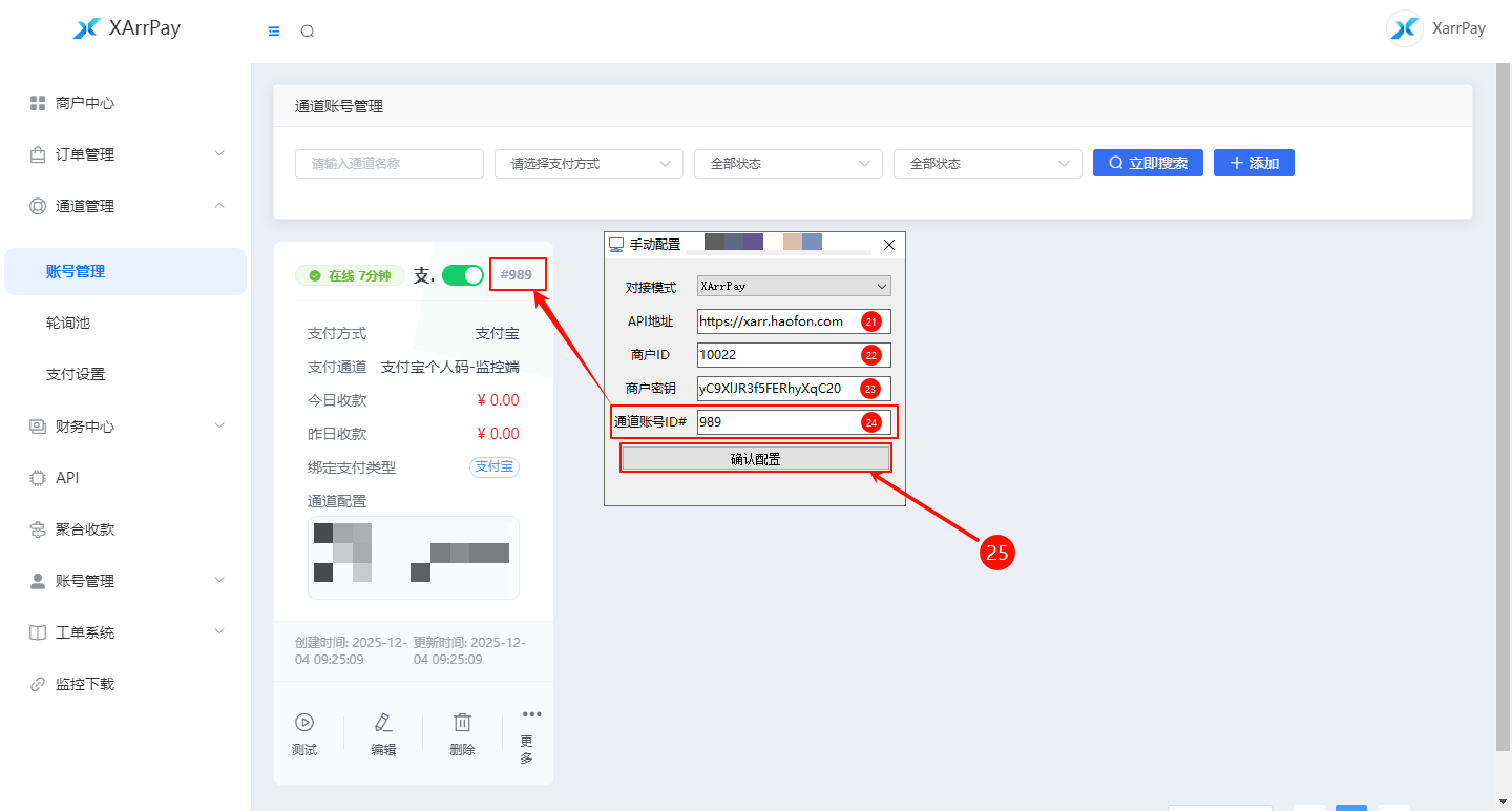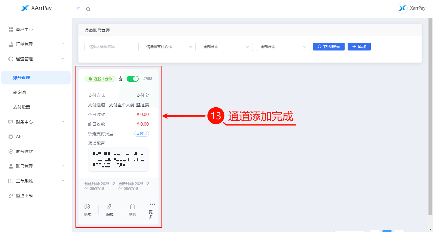 返回 XArrPay 后台的 「通道管理」 页面。