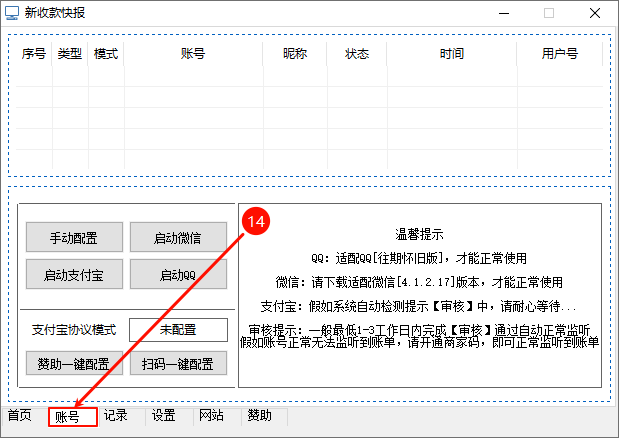 四、配置新收款快报监听微信收款