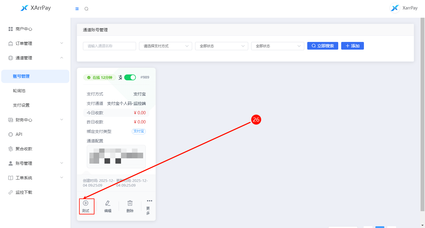五、在 XArrPay 后台测试通道